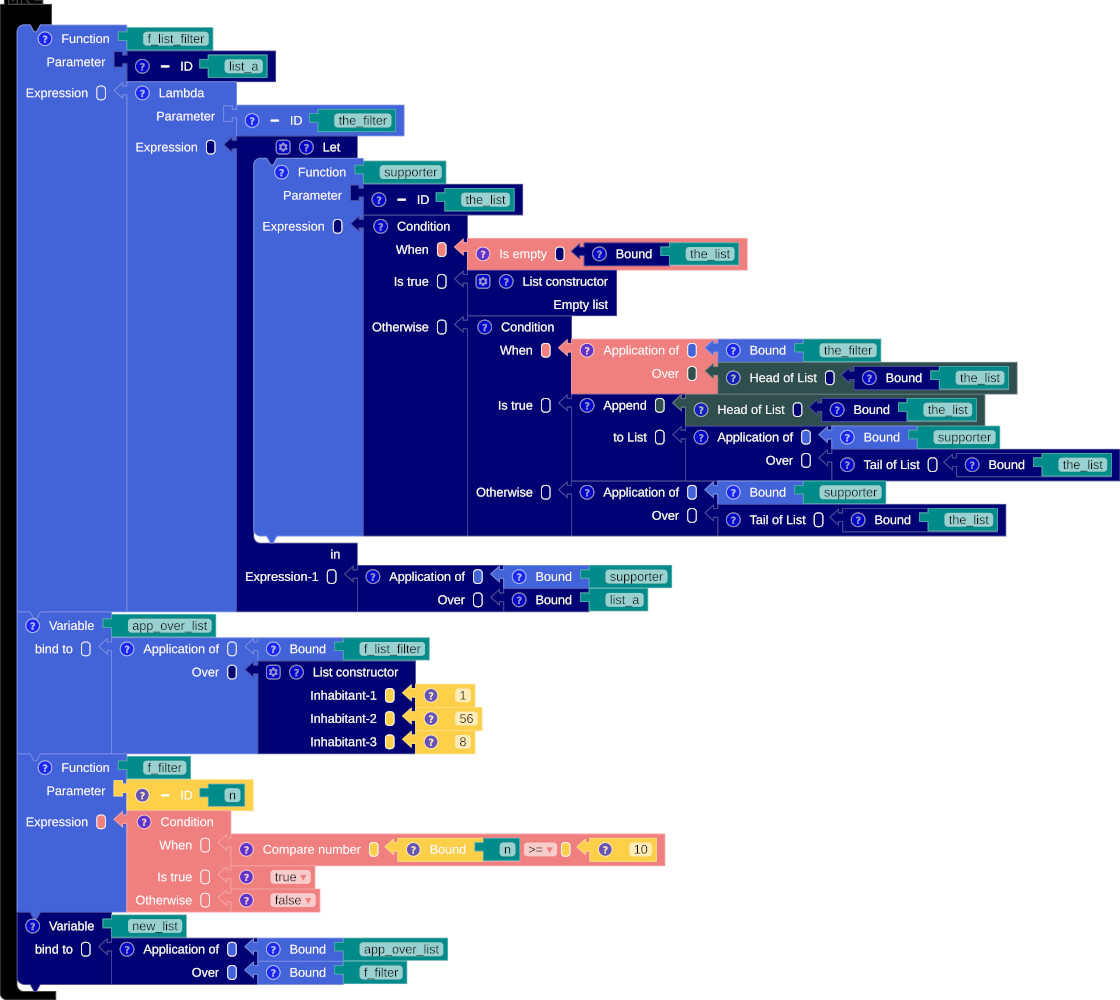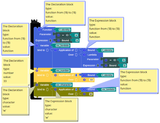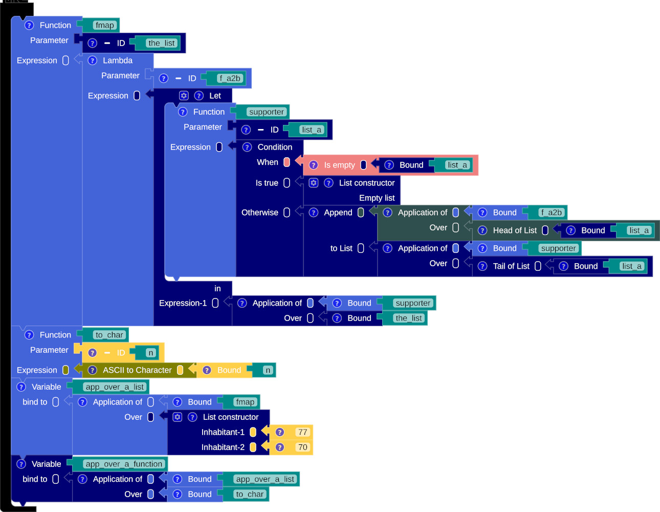 MNL is a block-based functional programming language developed to facilitate programming education. It enables visualization of computational processes, including beta reduction and function evaluation. Additionally, MNL employs visual elements such as shape and color to convey semantic information to users.